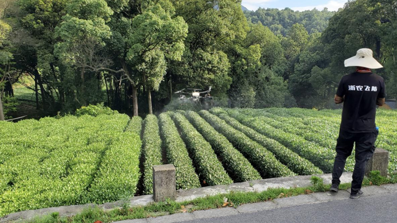 同時,浙農飛防持續拓展服務功能,除了在大田糧油作物上的應用,公司近年來在茶樹、香榧等經濟作物上開展的飛防服務也頗受種植戶歡迎,浙農飛防同時還深度參與了相關技術規范規程的標準制定工作。前期,浙農飛防連續中標西湖、淳安等地茶葉統防統治項目及諸暨稽東香榧無人機授粉項目,有效實現了為作物增產提質。“像在香榧上,無人機高空噴霧噴灑的方式基本上能夠做到精準的全株授粉,在茶葉上則能做到均勻著藥著肥,前期我們還運用無人機幫助茶農吊運茶青,大大節省了人力,可以說無人機作業的優勢非常明顯?!闭戕r飛防團隊負責人王廣源這樣說。