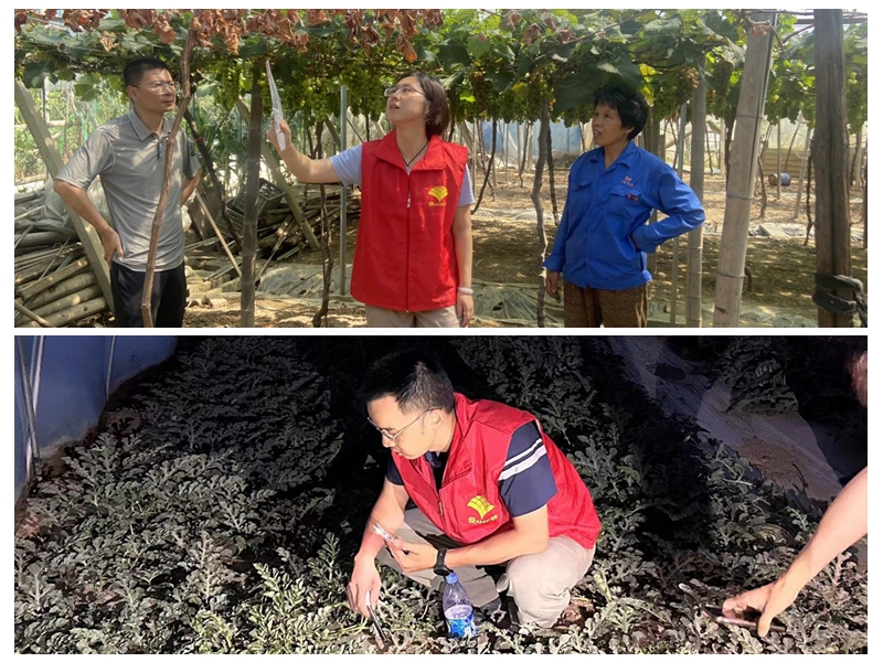 內蒙古小分隊的服務故事是愛普黨員農技服務隊的一個典型縮影,在祖國廣袤大地上,愛普科技黨員干部的身影還活躍在各處田間地頭,為農戶傾情服務:安徽長豐地區主栽紅顏草莓,由于連年種植及不科學施肥,導致當地土壤酸化、鹽漬化,草莓重茬病害和死苗現象嚴重,對此,愛普黨員農技服務隊自2022年起便根據當地土壤特性、栽培習慣等實際情況,積極推進“微生物菌肥+生物刺激劑”的推廣使用,近年來有效緩解了重茬導致的苗期死苗等病狀,草莓長勢增強、抗病抗逆能力提升,在提高了產量的同時有效節省了莓農投入;今年,富陽區部分葡萄作物受連續陰雨及暴雨影響,根部泡水淹死,導致減產甚至絕收,愛普黨員農技服務隊聞訊立即趕赴富陽東洲葡萄種植戶棚中,進行災后恢復技術指導,在實地水土檢測后為農戶規劃后續種植方案,幫助果農重拾信心,走出生產困境……